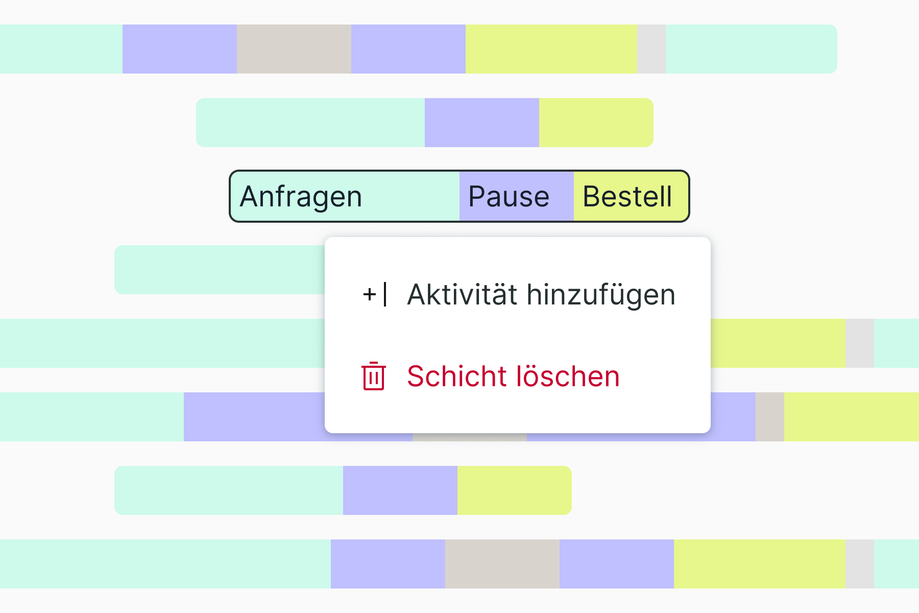 Erfassen Sie alle Arten von Aktivitäten während der Arbeitszeit und Abwesenheiten, um die Einhaltung der Planvorgaben präzise zu verfolgen.