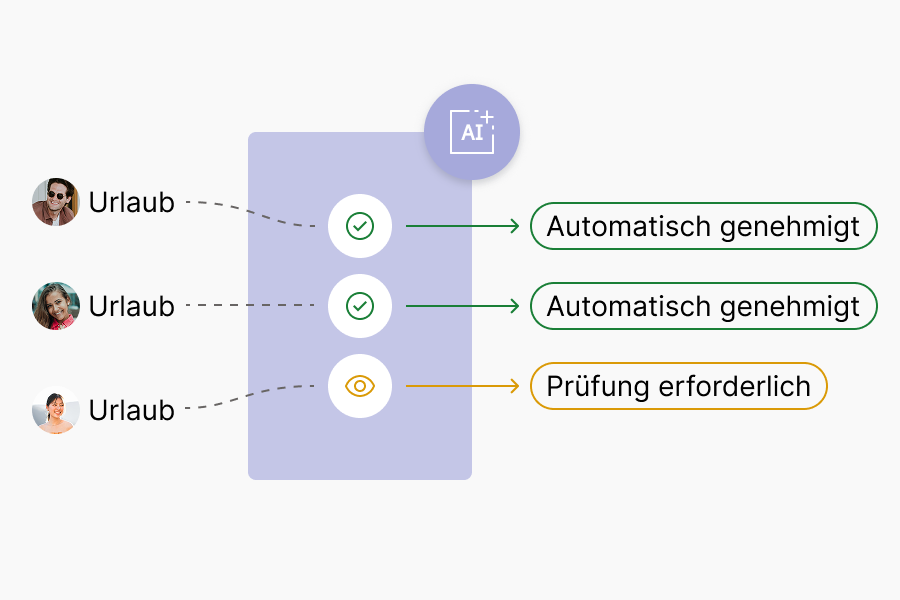 Definieren Sie Genehmigungsprozesse für jeden Abwesenheitstyp: vollautomatisch, mehrstufig, individuell.