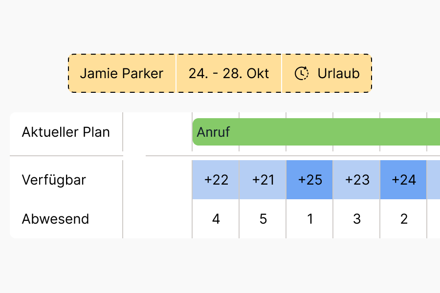 Steuern Sie Abwesenheiten, ohne Geschäftsziele zu gefährden. Routinetätigkeiten laufen automatisiert im Hintergrund, während Sie die Kontrolle über zentrale Entscheidungen und Ressourcen behalten.