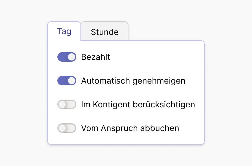 Separate Guthaben für jeden Abwesenheitstyp gewährleisten stets korrekte Ansprüche und deren Nutzung.