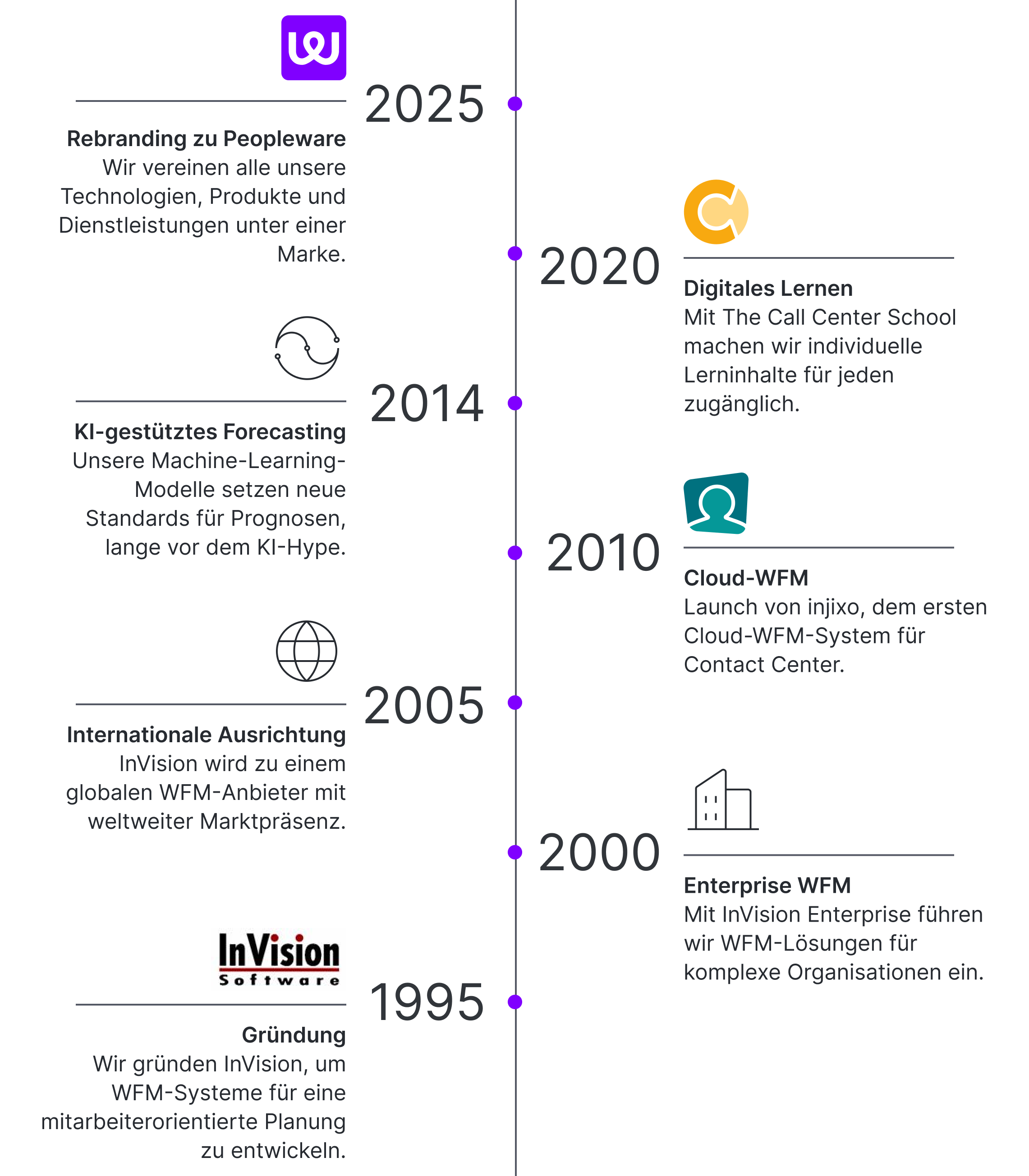 Seit mehr als drei Jahrzehnten sind wir führend im Workforce Management. Nicht mit kurzfristigen Trends, sondern mit Ideen, die unsere Art zu arbeiten, nachhaltig verändern - wie z.B. das Einbeziehen von Mitarbeitern in der Einsatzplanung, oder die Einführung von Prognosen, die auf Machine Learning basieren. Diese einst radikalen Ideen sind heute Industriestandard.