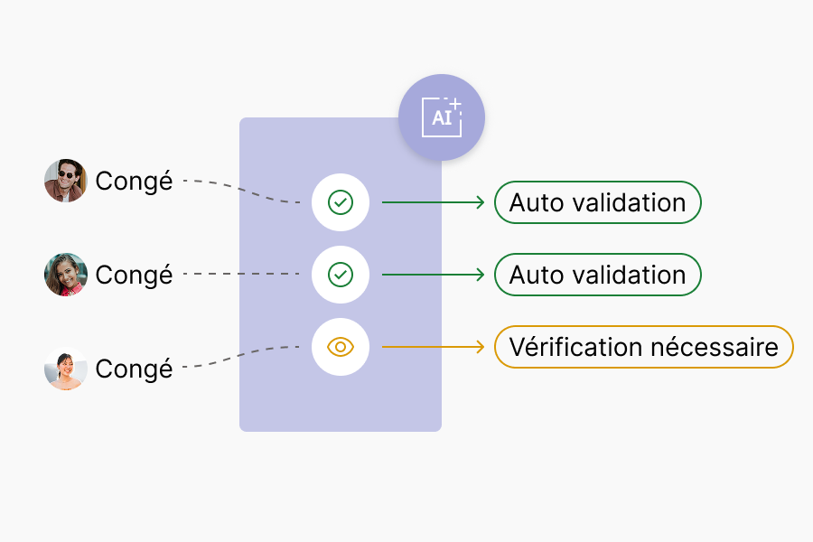 Définissez un processus d’approbation pour chaque type d’absence : totalement automatisé, en deux étapes ou personnalisé.