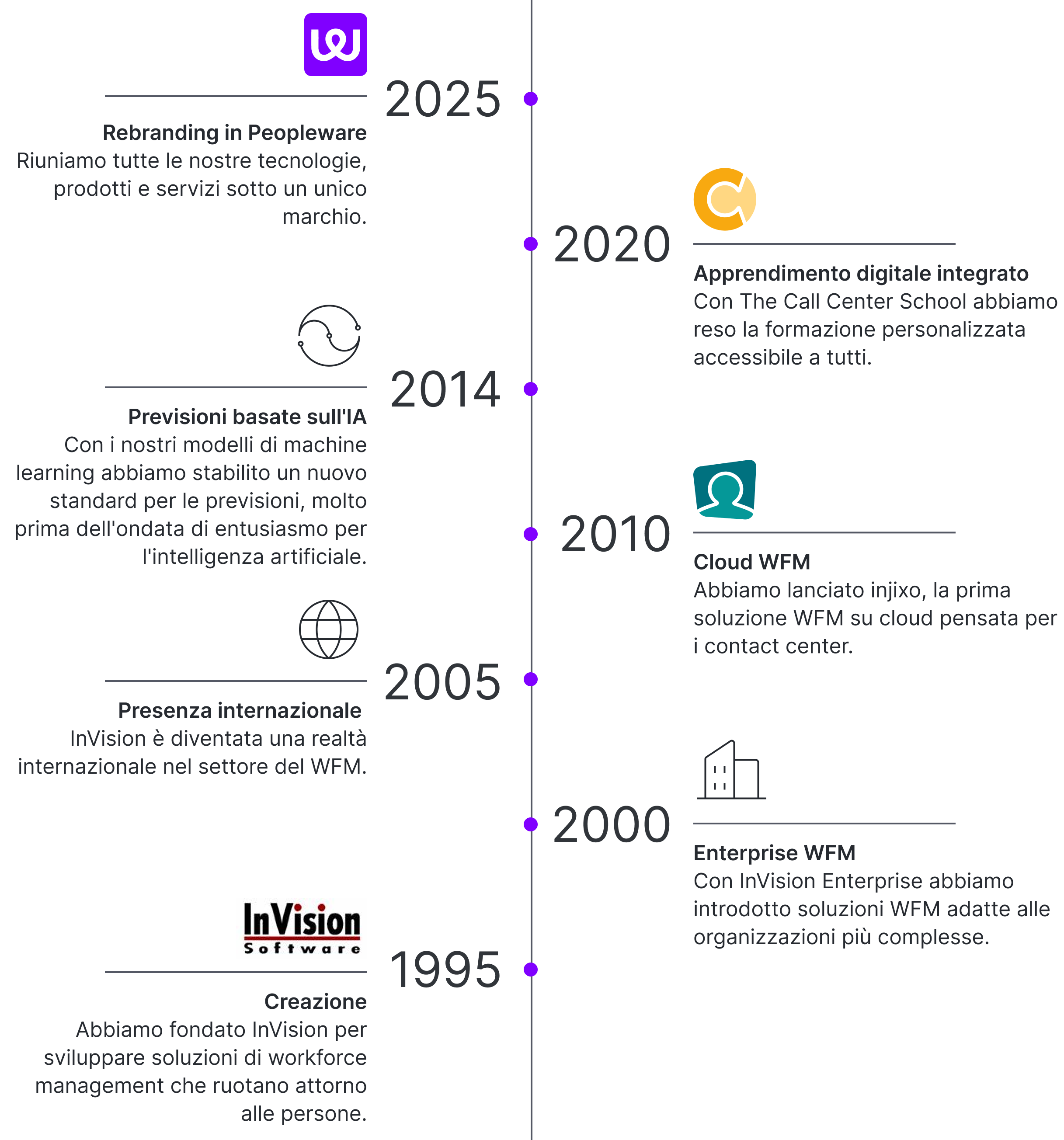 Abbiamo riunito tutti i prodotti e i servizi InVision sotto un unico marchio per creare un'offerta che racchiude tutta la nostra esperienza nel workforce management. Così puoi beneficiare più facilmente di quanto abbiamo da offrirti, e avere un'esperienza più fluida su tutte le piattaforme.